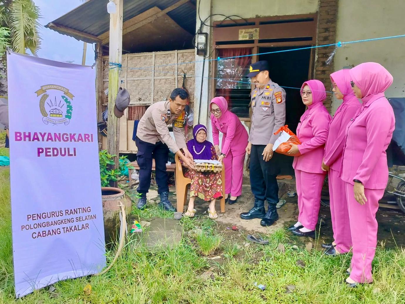 Kegiatan sosial ini dipimpin langsung oleh Kapolsek Polsel, IPTU Muh. Nasir Arleza, SH, didampingi Ketua Ranting Bhayangkari Polongbangkeng Selatan, Ny. Anna Nasir, beserta pengurus Bhayangkari.