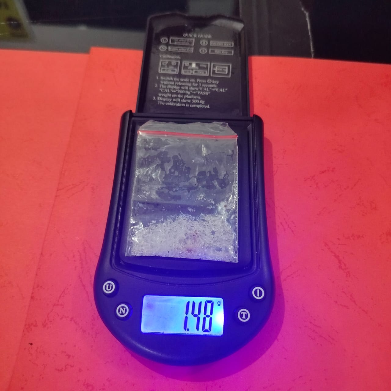1 (satu) paket plastik klip bening berisi kristal bening diduga shabu (berat bruto 1,48 gram)