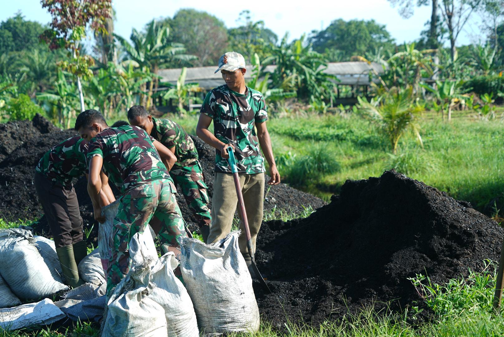 Wartapolri.web.id, Aceh Barat, Korem 012/Teuku Umar terus memaksimalkan pengelolaan lahan ketahanan pangan seluas lebih kurang 40 hektare yang dikelola secara terpadu meliputi sektor pertanian, peternakan, dan perikanan. Salah satu inovasi yang dikembangkan adalah pemanfaatan limbah padat hasil pengolahan tandan buah segar kelapa sawit, yang dikenal sebagai solid sawit, sebagai pupuk organik.