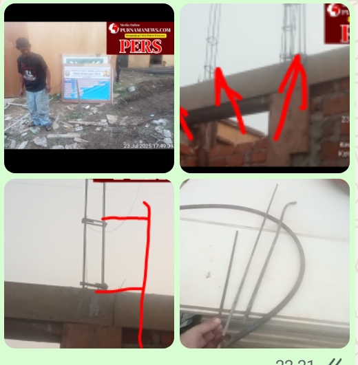 Dan yang terlihat jelas kasat mata ,besi yang digunakan diduga besi banci , sebab tidak ada tanda KS saat kita tanya Budi selaku kepala tukang ,apakah itu besi 8,10,12 dan 16 itu besi kes semua ,bukan banci ,iya mas kes semua bukan banci jawab Budi ,,