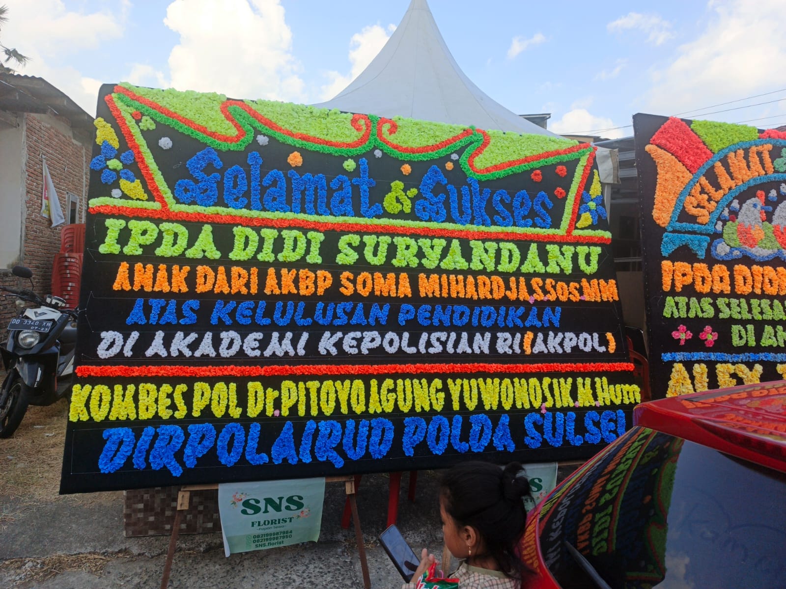 Ucapan selamat dan doa pun mengalir dari berbagai pihak atas prestasi tersebut, termasuk dari Direktur Kepolisian Perairan dan Udara (Dirpolairud) Polda Sulawesi Selatan, Kombes Pol Dr. Pitoyo Agung Yuwono, S.I.K., M.Hum. Melalui sebuah karangan bunga, beliau menyampaikan rasa bangga dan harapan agar IPDA Didi Suryandanu dapat menjalankan tugas dan tanggung jawabnya dengan profesional dan berintegritas.