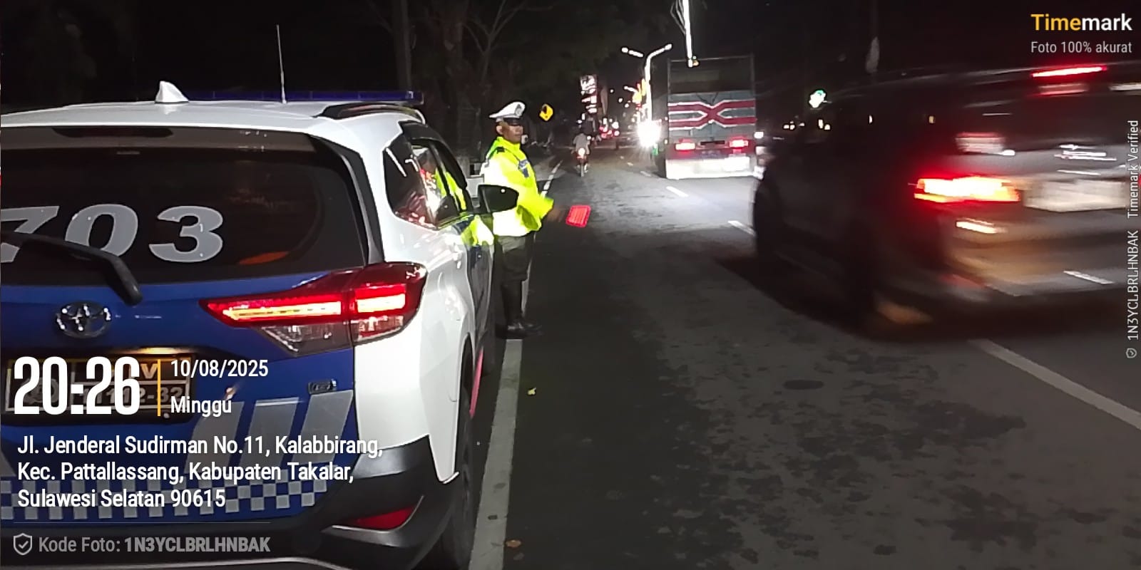 Takalar, 11 Agustus 2025 – Satuan Lalu Lintas (Sat Lantas) Polres Takalar melaksanakan patroli Blue Light pada malam hari di sejumlah titik rawan pelanggaran dan kecelakaan lalu lintas (laka lantas) di wilayah hukum Polres Takalar.