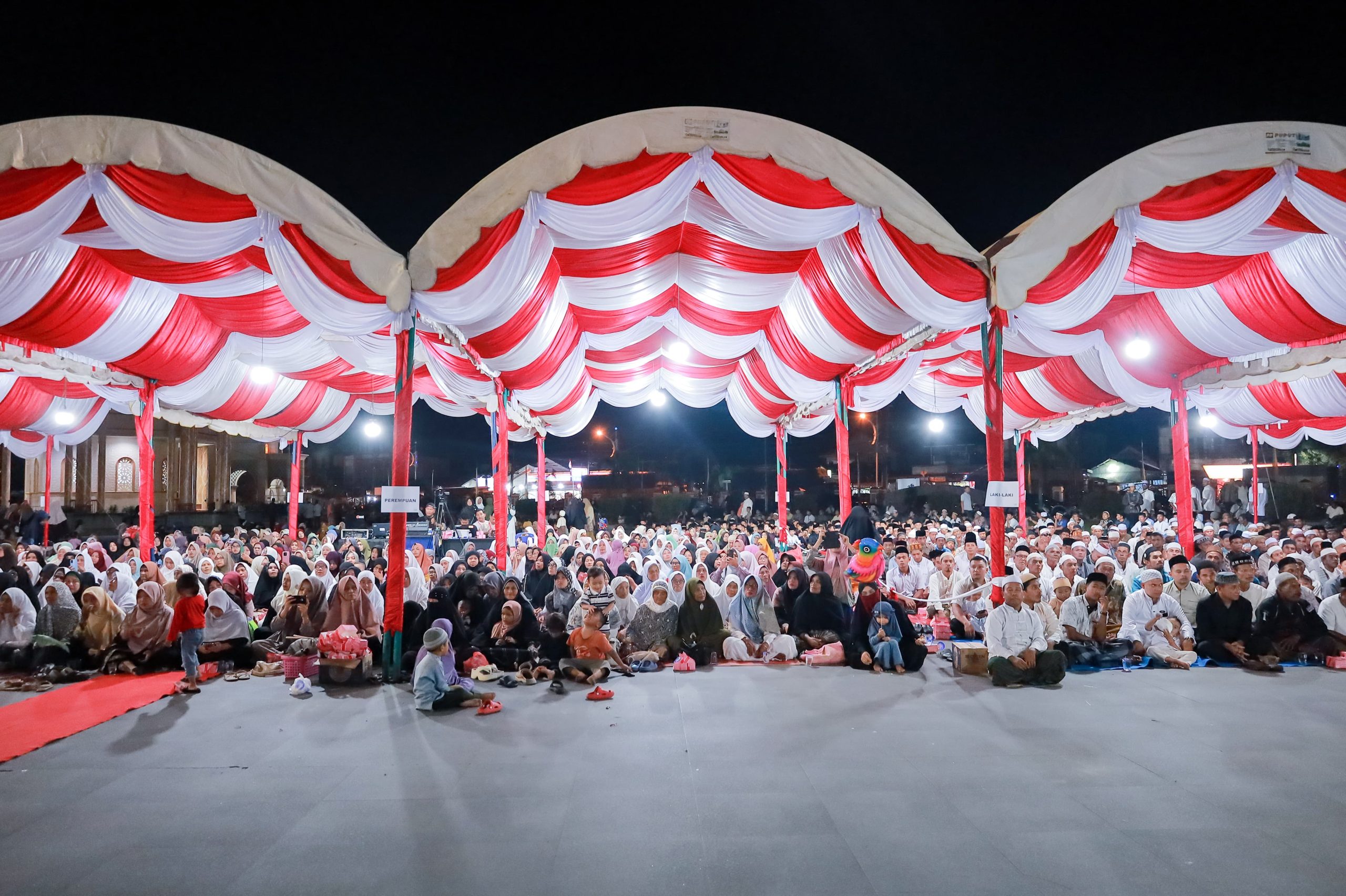 Wartapolri.web.id, Meulaboh – Bupati Aceh Barat Tarmizi SP, MM menghadiri kegiatan Zikir Akbar kebangsaan dalam rangka memperingati Hari Ulang Tahun Republik indonesia (HUT RI) ke 80 di halaman Masjid Agung Baitul Makmur, Meulaboh pada Minggu (24/8/2025) malam.