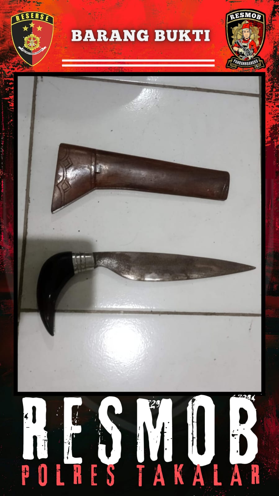 Menindaklanjuti laporan polisi Nomor: LP/B/253/IX/2025/SPKT POLRES TAKALAR/POLDA SULSEL, Tim Resmob segera melakukan penyelidikan. Dari hasil informasi di lapangan, pelaku diketahui berada di kediamannya di Desa Towata. Tanpa perlawanan, pelaku berhasil diamankan berikut barang bukti sebilah badik yang digunakan saat kejadian.