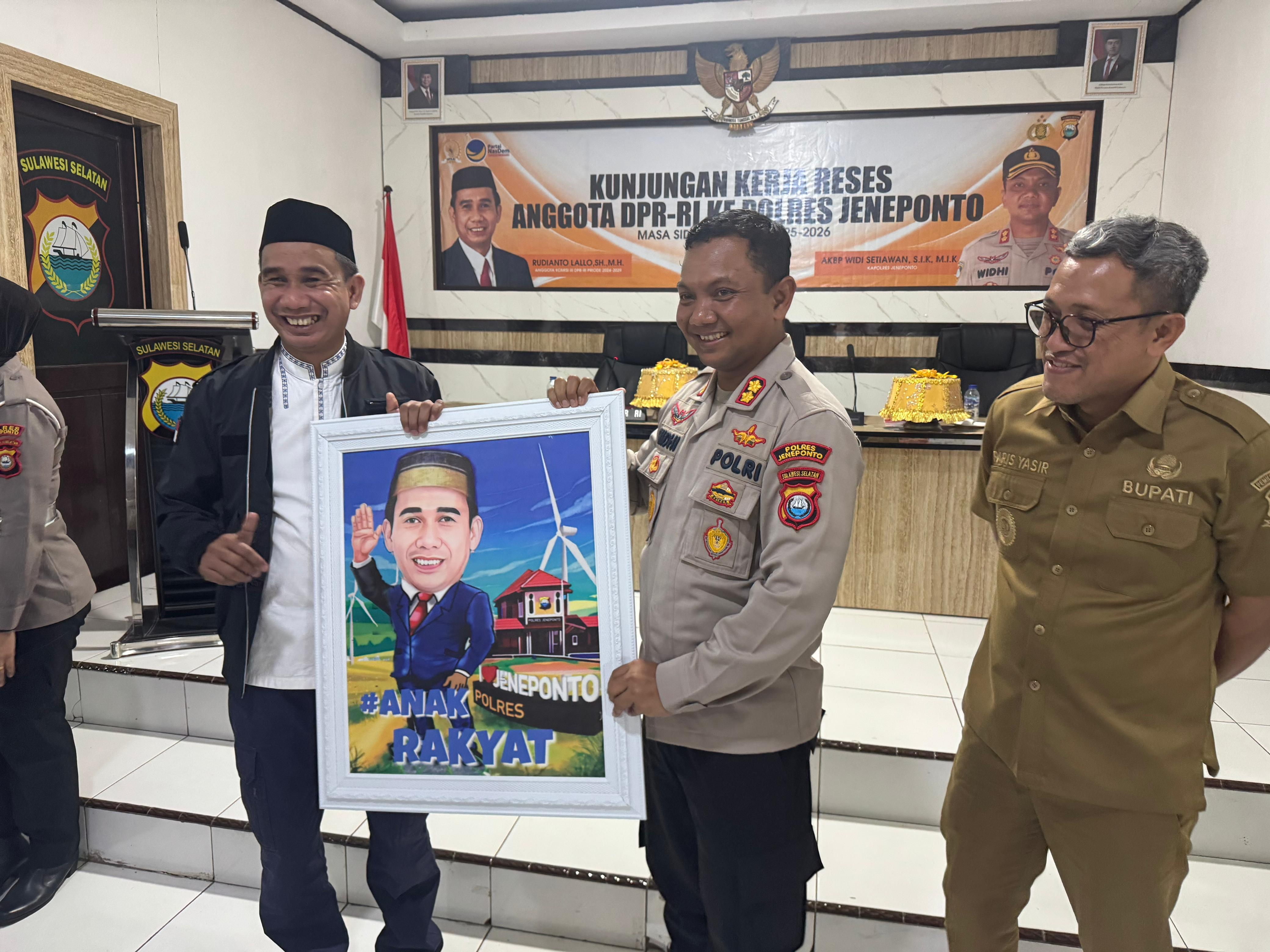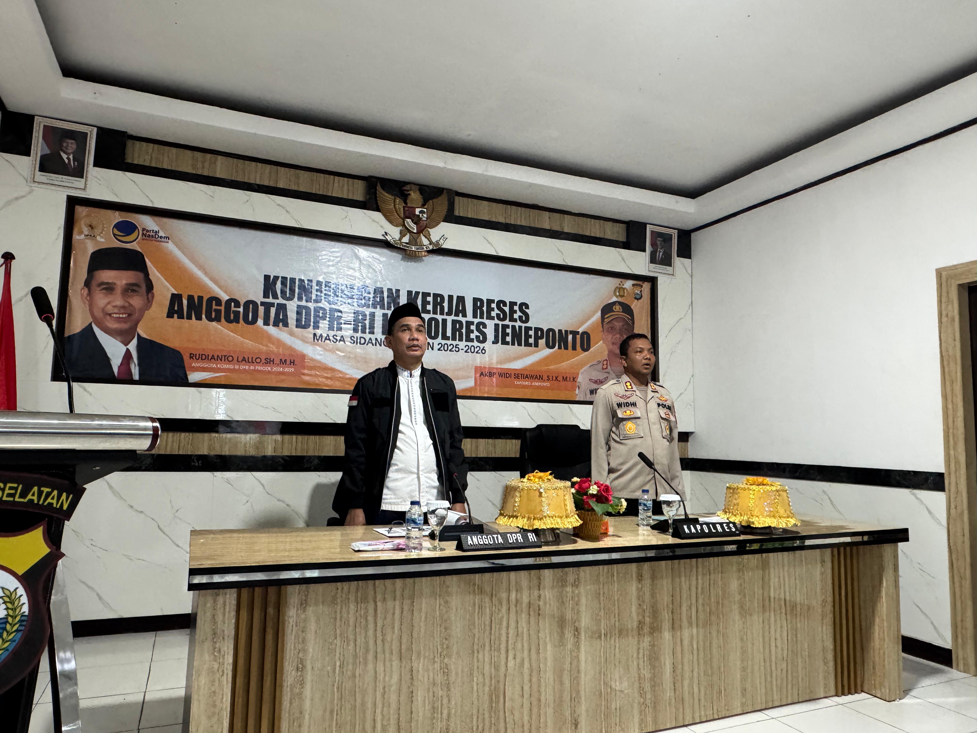 Dalam sambutannya, Kapolres Jeneponto AKBP Widi Setiawan terlebih dahulu menyampaikan selamat datang kepada Anggota Komisi III DPR RI Rudianto Lallo. Menurut dia, kunjungan itu sebagai suatu kebanggaan.