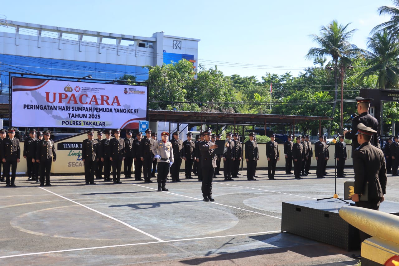 Takalar – Lapangan Apel Polres Takalar menjadi saksi khidmatnya pelaksanaan Upacara Bendera Peringatan Hari Sumpah Pemuda ke-97 Tahun 2025, pada Selasa (28/10/2025) pukul 07.30 Wita. Upacara tahun ini mengusung tema “Pemuda Pemudi Bergerak, Indonesia Bersatu”, sebagai refleksi semangat kebangsaan dan persatuan generasi muda di tengah tantangan zaman.