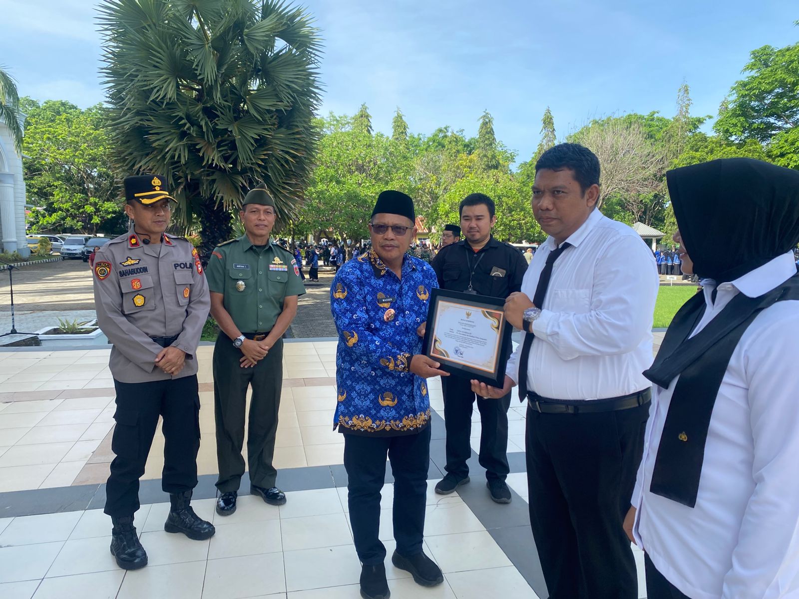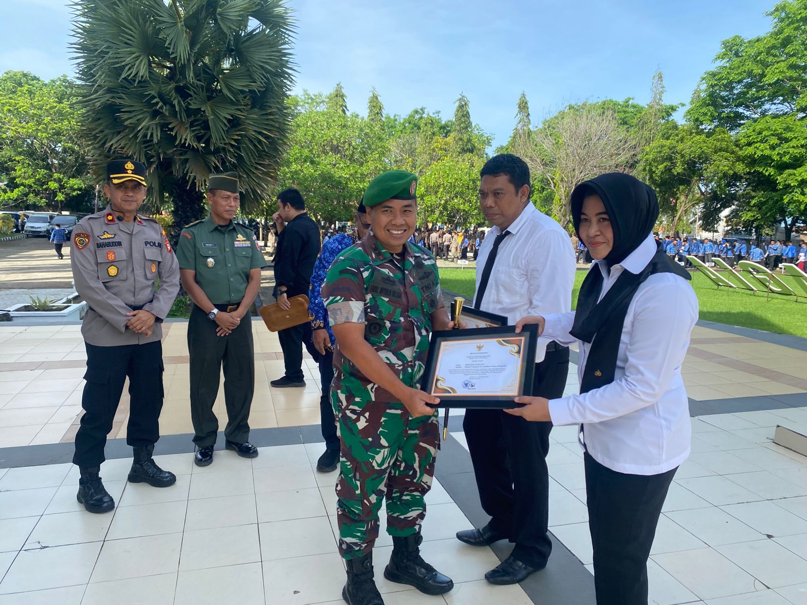Penyerahan penghargaan diserahkan secara simbolis oleh PJ. Sekda Jeneponto Maskur, S.Ag, MH, CGCAE kepada Aipda Suarhalim dan Dandim 1425 Jeneponto Letkol Inf. Abdul Muthalib Tallasa kepada Brigpol Hariani, bertempat di halaman Kantor Bupati Jeneponto, pada Senin pagi, (17/11/2025).