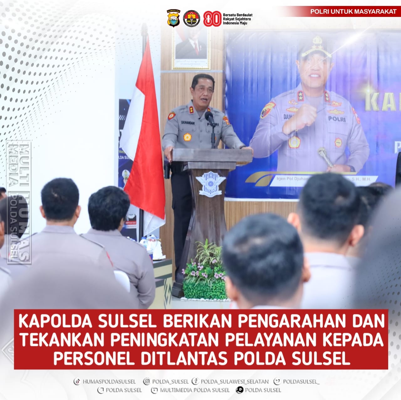 Kapolda Sulsel menekankan pentingnya pelayanan prima kepada masyarakat sebagai bagian dari tugas pokok Polri, khususnya fungsi lalu lintas yang bersentuhan langsung dengan masyarakat setiap hari.