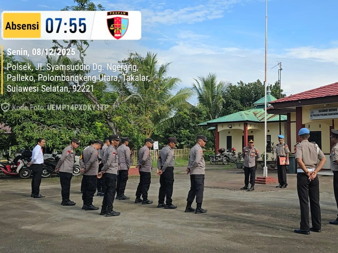 Takalar — Apel pagi di Mapolsek Polongbangkeng Utara (Polut) pada Senin, 08 Desember 2025 berlangsung dengan nuansa berbeda. Dipimpin langsung Kapolsek Polut IPTU Muh. Faisal Akbar, kegiatan apel tersebut dimanfaatkan untuk memberikan sosialisasi penting mengenai larangan dan bahaya gaya hidup hedon di lingkungan kepolisian.