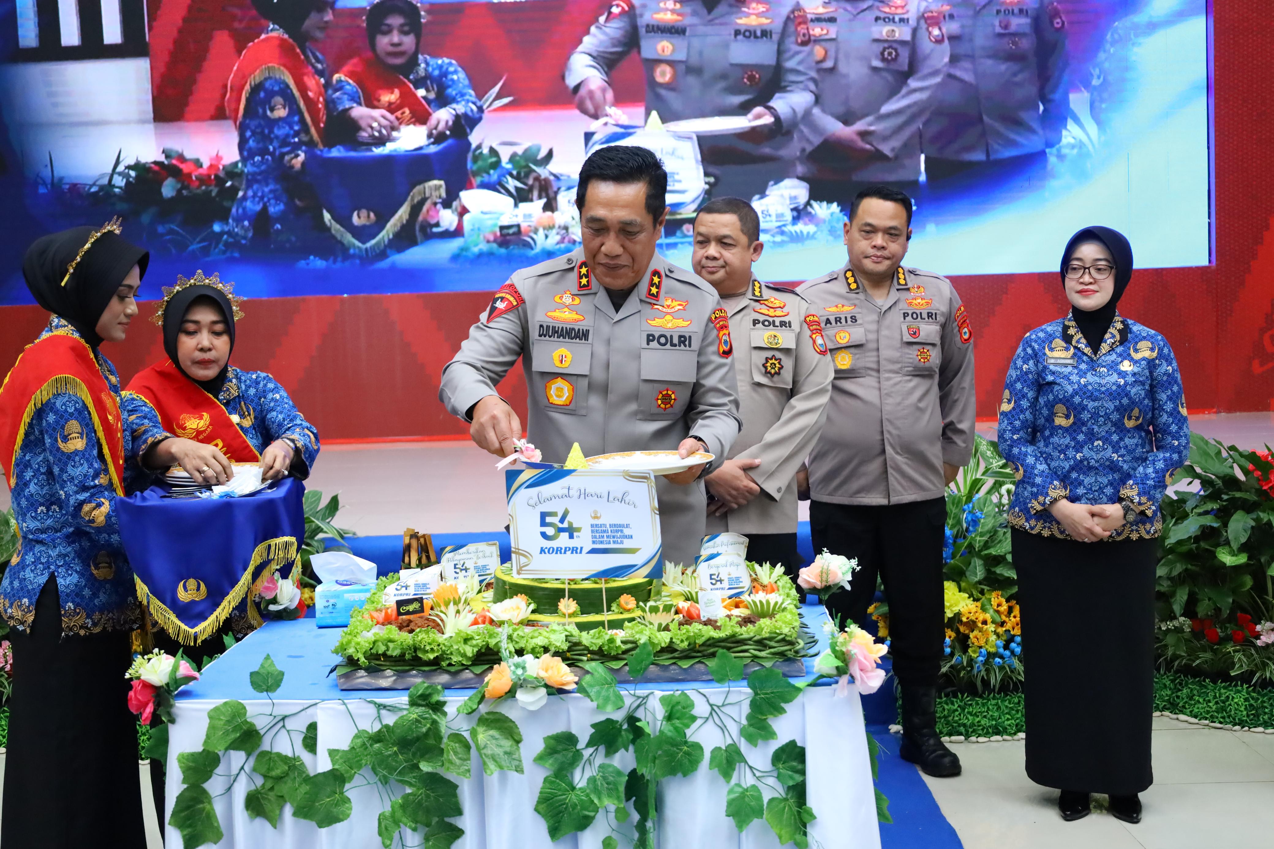 Peringatan HUT Ke-54 Korpri Tahun 2025 mengusung tema “Bersatu, Berdaulat, Bersama Korpri Mewujudkan Indonesia Maju”. Tema ini menegaskan tekad ASN untuk tetap menjaga persatuan, soliditas, serta integritas dalam menjalankan tugas negara. Kapolda menekankan bahwa Korpri merupakan kekuatan pemersatu sekaligus penggerak birokrasi yang berperan penting dalam terwujudnya tata kelola pemerintahan yang bersih, efektif, dan berkeadilan.