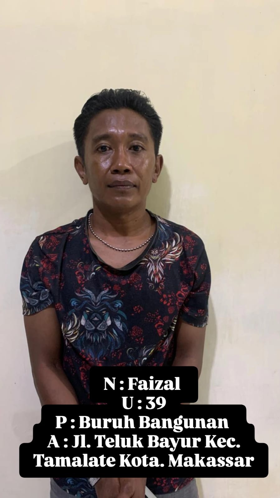 Pelaku lk. Faisal, akhirnya diringkus pada hari Selasa tanggal 16 Desember 2025, pukul 23.00 wita, dengan TKP salahsatu tempat kost yang di jaga oleh pelaku di Jl. Teluk Bayur Kelurahan Maccini Sombala, Kecamatan Tamalate kota Makassar, oleh Tim Opsnal Resmob Polsek Tamalate, saat diamankan ditemukan barang bukti berupa, 29 (dua puluh sembilan) buah anak panah / busur, 1 (satu) buah ketapel, 1 (satu) buah Gurinda, 1 (satu) buah penyimpanan busur terbuat dari pipa.