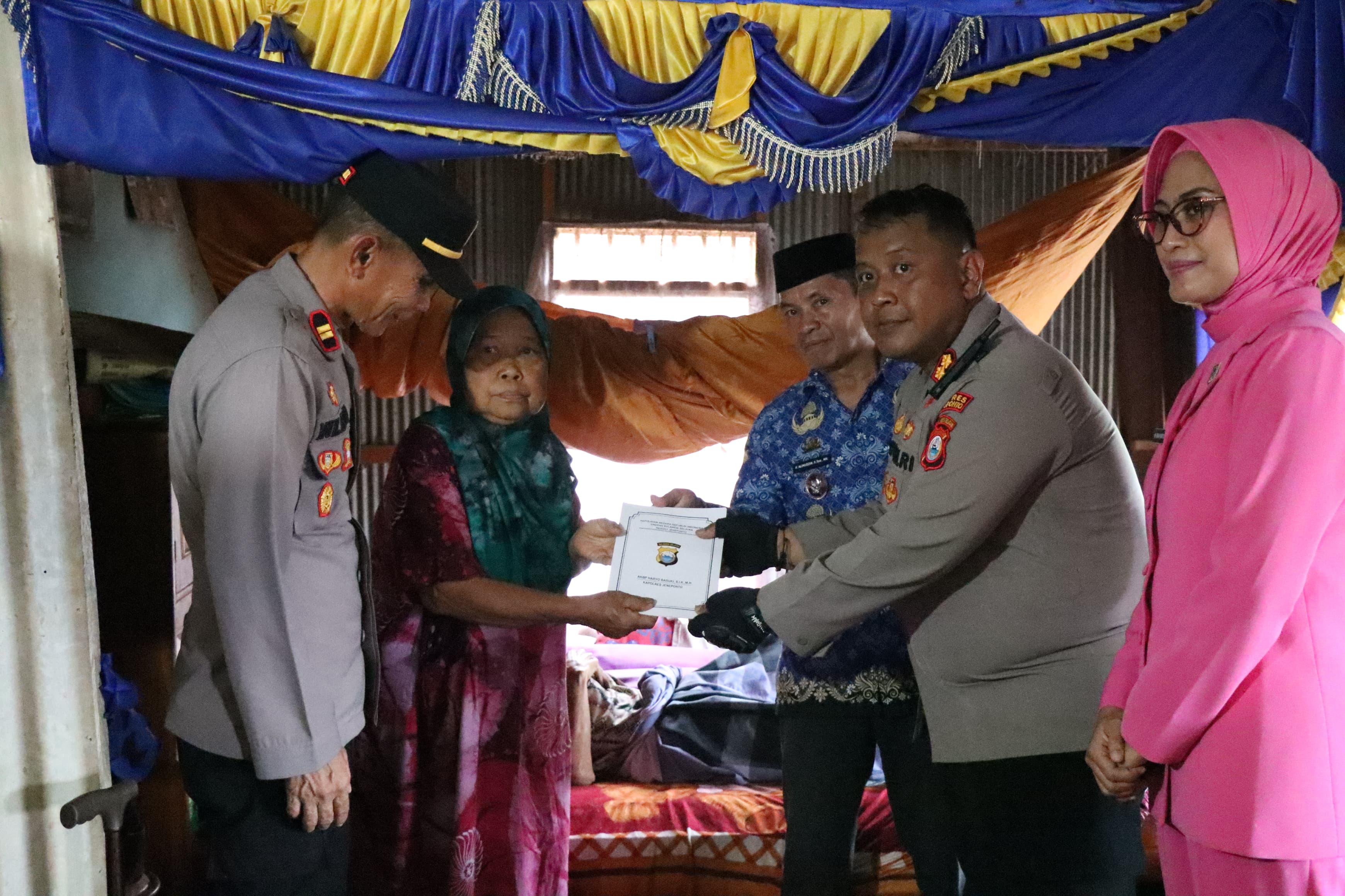 Dalam kunjungan tersebut, Kapolres memberikan bantuan berupa paket sembako serta pelayanan kesehatan kepada Bapak Salam, seorang warga lanjut usia yang mengalami kelumpuhan. Kehadiran orang nomor satu di jajaran kepolisian Jeneponto ini disambut haru oleh keluarga dan warga sekitar.