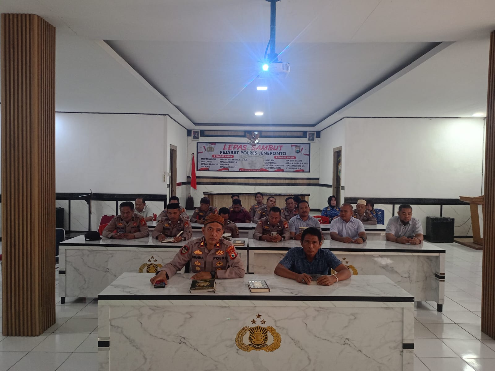 Acara yang digelar di tribun Mapolres Jeneponto tersebut menjadi momen istimewa karena di samping berbuka puasa bersama, Kapolres juga memberikan santunan kepada anak yatim sebagai bentuk kepedulian sosial di bulan suci Ramadhan.
