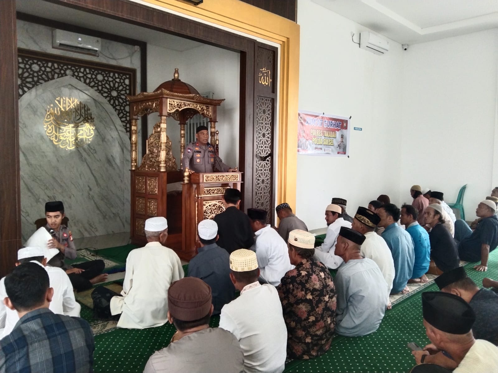 Tak hanya itu, sejumlah imbauan kamtibmas turut disampaikan, mulai dari pencegahan kenakalan remaja, bahaya penyalahgunaan narkotika, pentingnya tertib berlalu lintas, hingga ancaman judi online yang kian marak. Sosialisasi layanan pengaduan cepat melalui call center 110 juga menjadi bagian dari edukasi kepada jamaah.