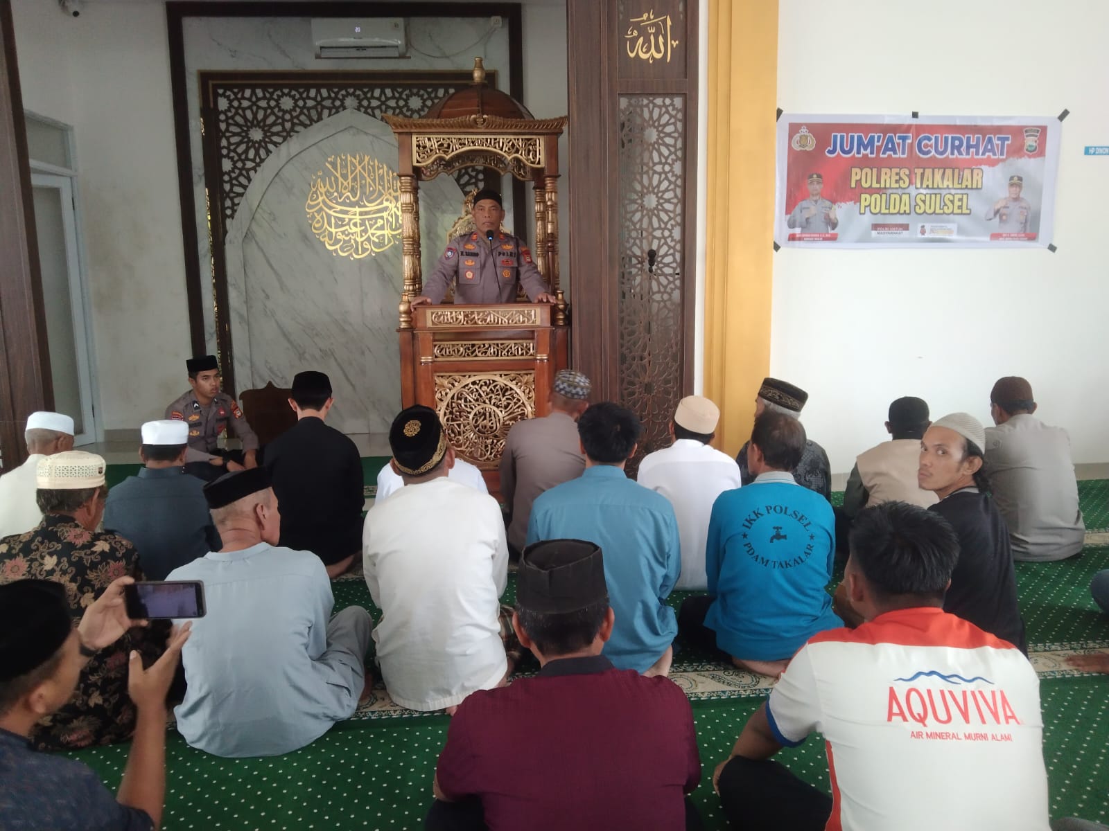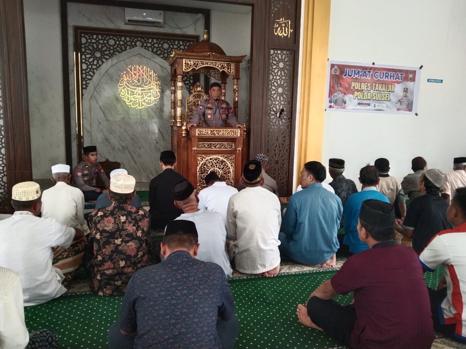 TAKALAR – Memanfaatkan momentum ibadah Jumat, Polres Takalar melalui Satuan Binmas menggelar Safari Jumat yang dirangkaikan dengan program “Jumat Curhat” di Masjid Fanny Frans, Lingkungan Kalappo Baru, Kelurahan Mangngadu, Kecamatan Marbo, Jumat (27/2/2026) sekitar pukul 12.00 Wita.