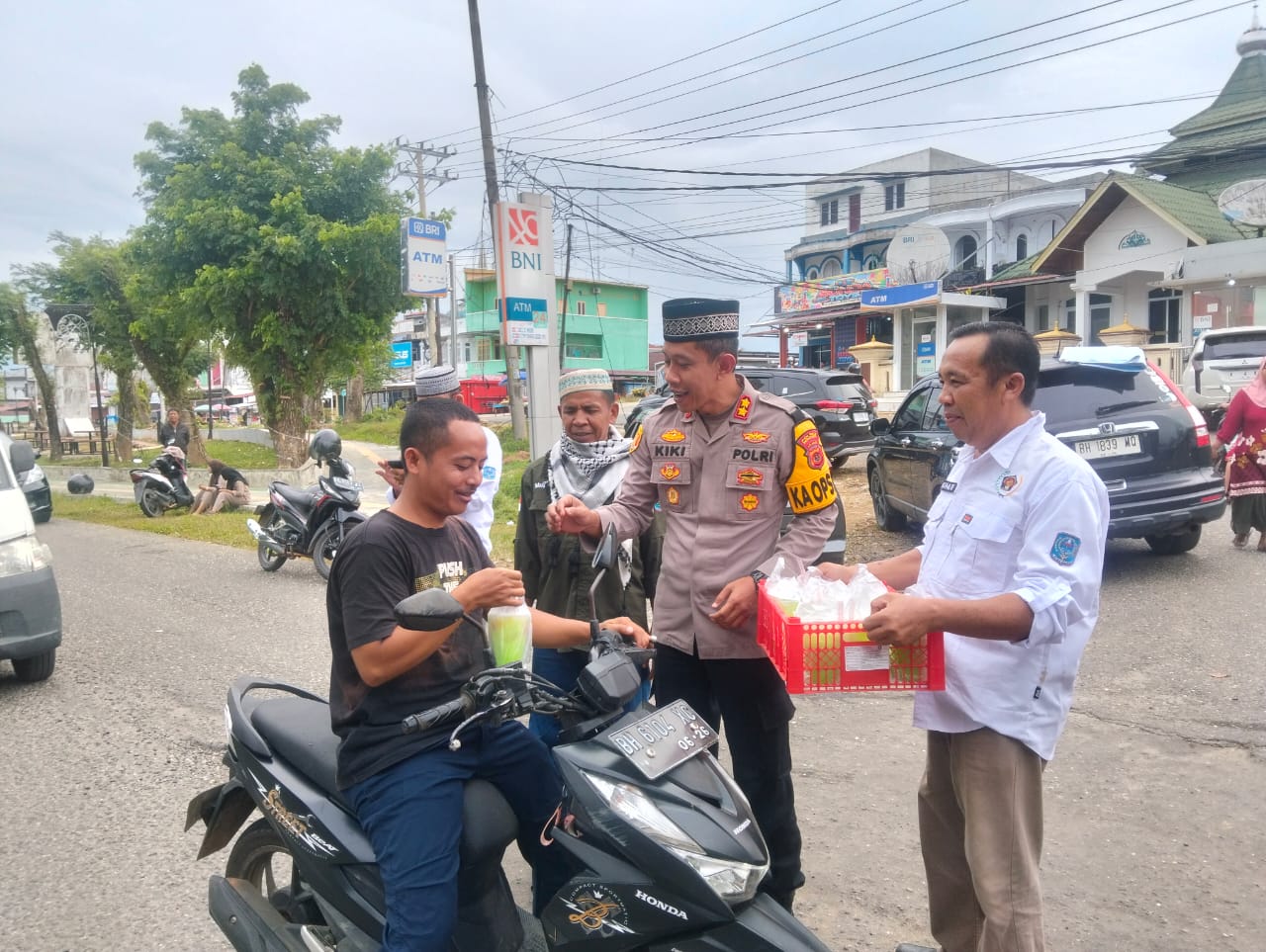 Selasa 4 Maret 2026 sekira pukul 17.00 wib, Kapolres Melalui Kapolsek Muara Siau Iptu. Agung Heru . W. S.sy. MM ,. didampingi personil Polsek muara Siau beserta PWI kabupaten merangin dengan suka cita jadikan bulan suci Ramadhan bulan berbagi untuk pengguna jalan tepatnya di jalur lambat lintas sumatera depan Mapolres merangin.
