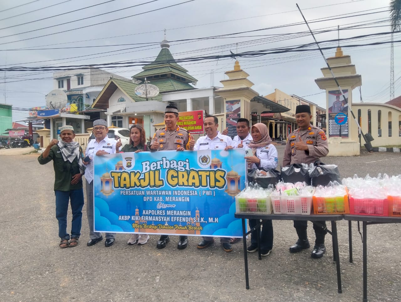 Wartapolri.web.id. Polsek muara Siau bersama PWI kabupaten Merangin melaksanakan kegiatan berbagi takzil di depan Mako Polres Merangin, pada kesempatan berbagi Kapolres Merangin AKBP. Kiki Firmansyah Efendi. S.IK. ,MH ., sempatkan hadir di sela tugasnya sambangi warga pengguna jalan dan bergabung dengan Awak media serta personil jajaran Polsek Muara Siau.