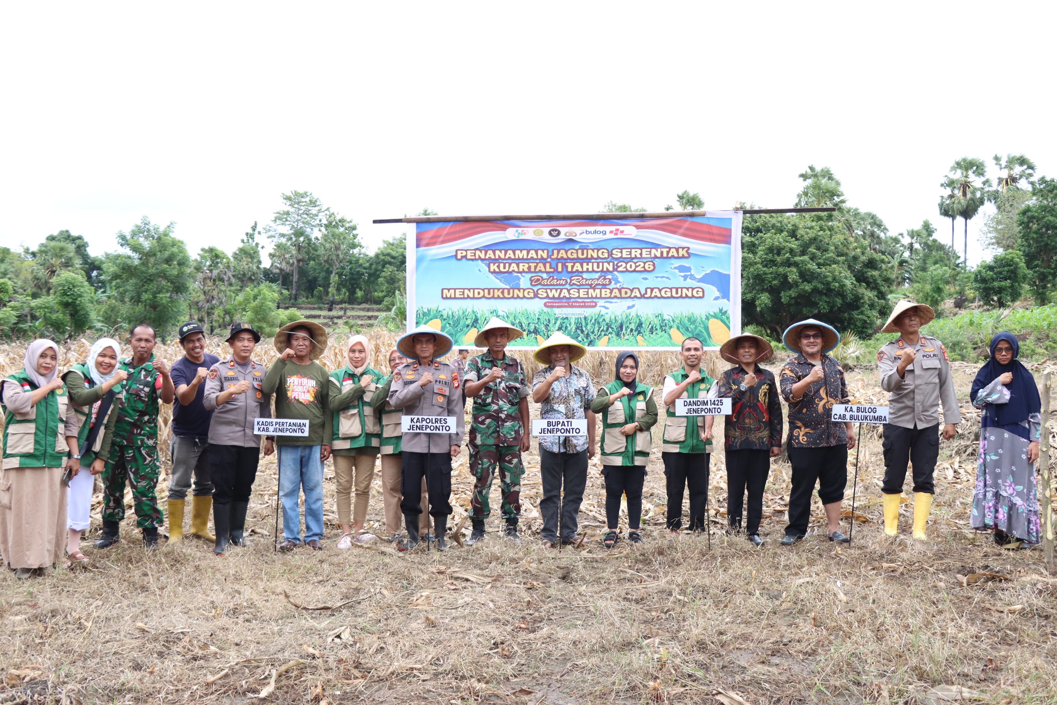 Jeneponto, 7 Maret 2026 – Polres Jeneponto menggelar kegiatan penanaman jagung serentak Kuartal I tahun 2026, Sabtu (7/3/2026), sebagai bentuk dukungan terhadap program pemerintah dalam mewujudkan swasembada jagung nasional. Kegiatan ini dilaksanakan secara terpusat yang dipimpin langsung oleh Kapolri Jenderal Polisi Drs. Listyo Sigit Prabowo, M.Si. secara daring.