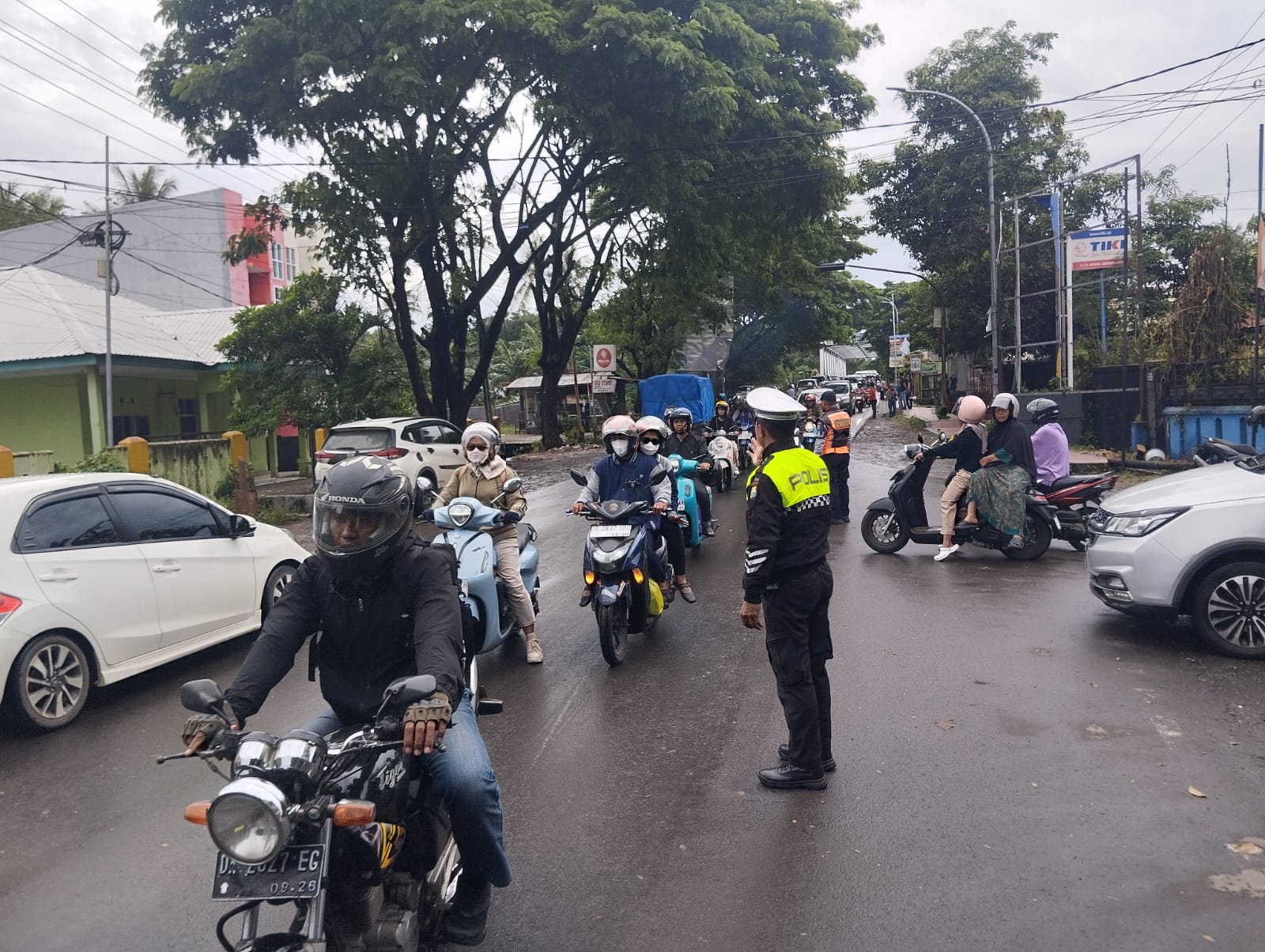 “Berkat pengaturan yang dilakukan oleh personil di lapangan, arus lalu lintas kedua arah tetap terlihat ramai namun lancar,” Jelas Kasat Lantas