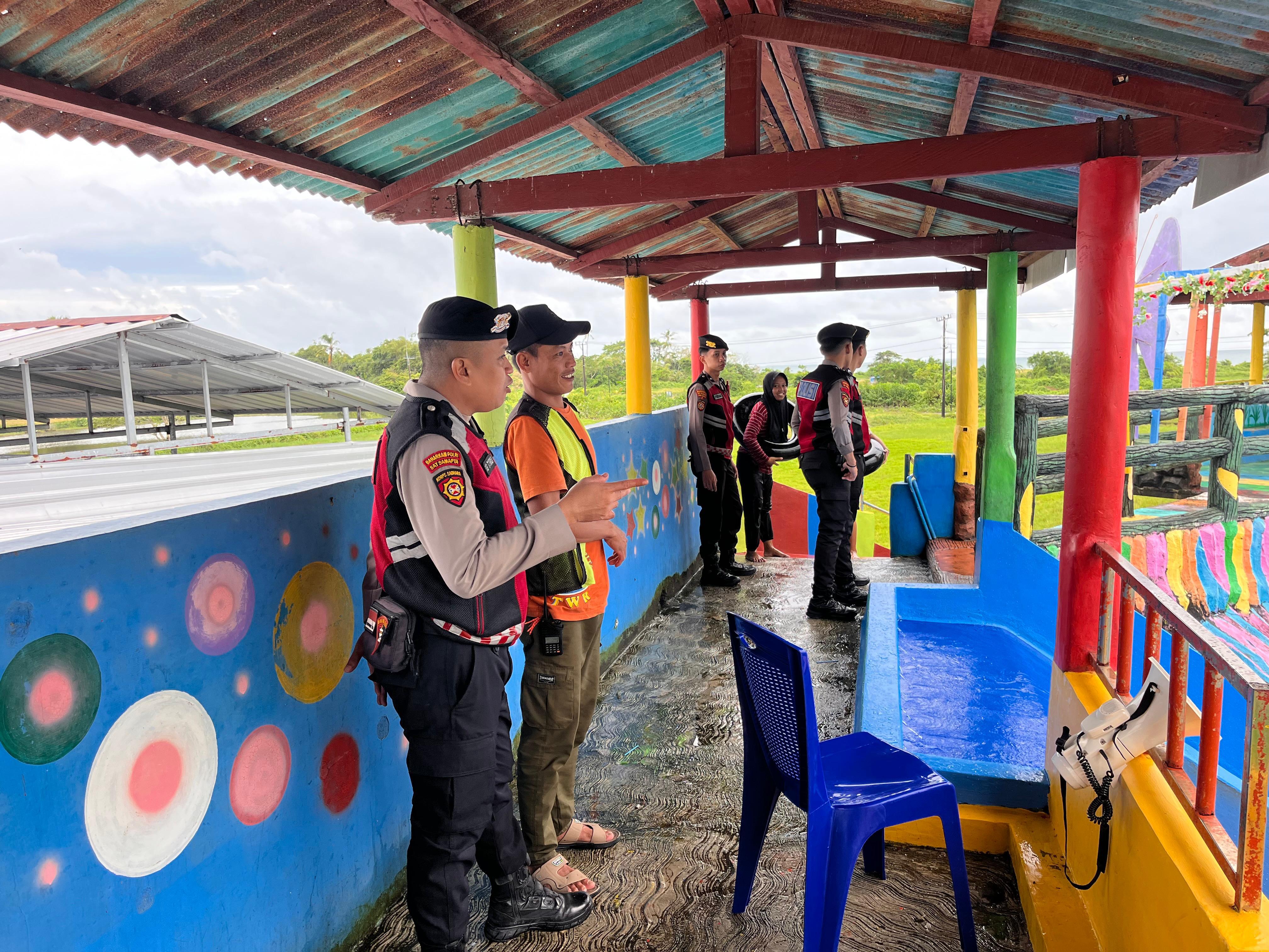 Petugas juga berkoordinasi dengan pihak pengelola tempat wisata agar tetap mengutamakan aspek keselamatan pengunjung, termasuk pengawasan di area kolam serta keamanan kendaraan di lokasi parkir.