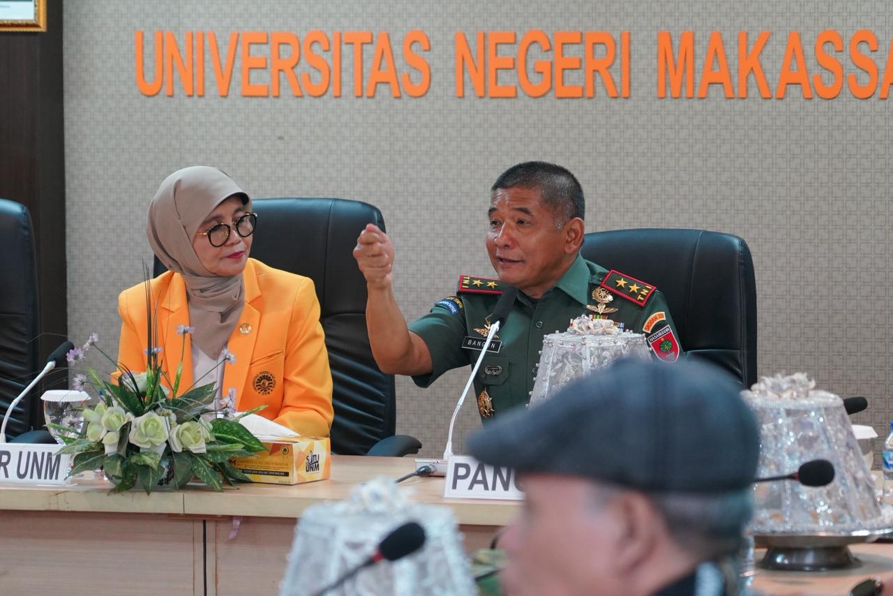 Dalam sambutannya, Rektor UNM menyampaikan apresiasi atas kunjungan Pangdam beserta rombongan serta menegaskan pentingnya sinergi antara institusi pendidikan dan TNI. Dan berharap ke depan ada kerja sama untuk peningkatan SDM kedua belah pihak. Sementara itu, Pangdam menyampaikan apresiasi atas sambutan hangat dari pihak kampus. Menyinggung soal program unggulan presiden RI diantaranya pembangunan KDKMP, program MBG dan pembangunan jembatan perintis, Ia menegaskan pentingnya kolaborasi lintas sektor dalam menyukseskan program tersebut. “Saya memiliki keyakinan bahwa tidak ada tugas untuk mensejahterakan bangsa dan negara ini yang bisa dikerjakan seorang diri”. Ungkapnya.