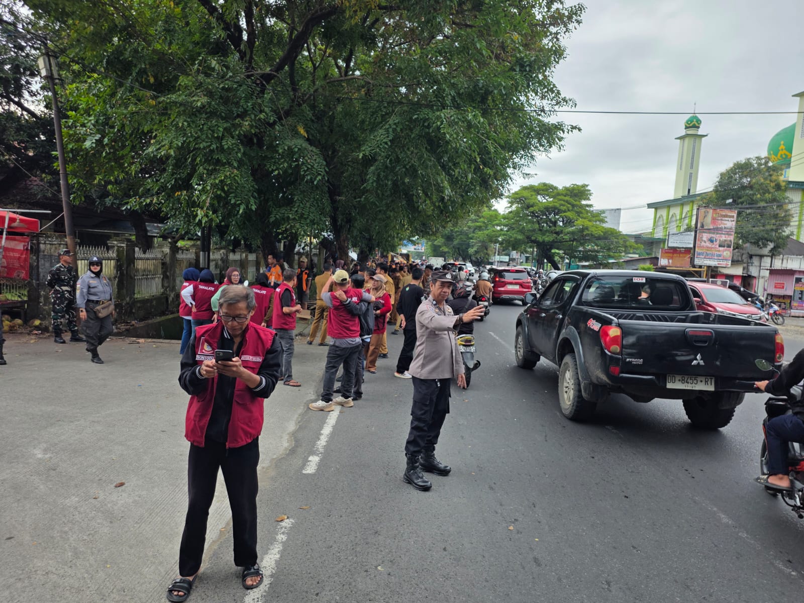 Anggota Satpol PP kecamatan Tamalate menegaskan, “Kami turut serta mengamankan kegiatan agar semua berjalan aman dan sesuai aturan.”