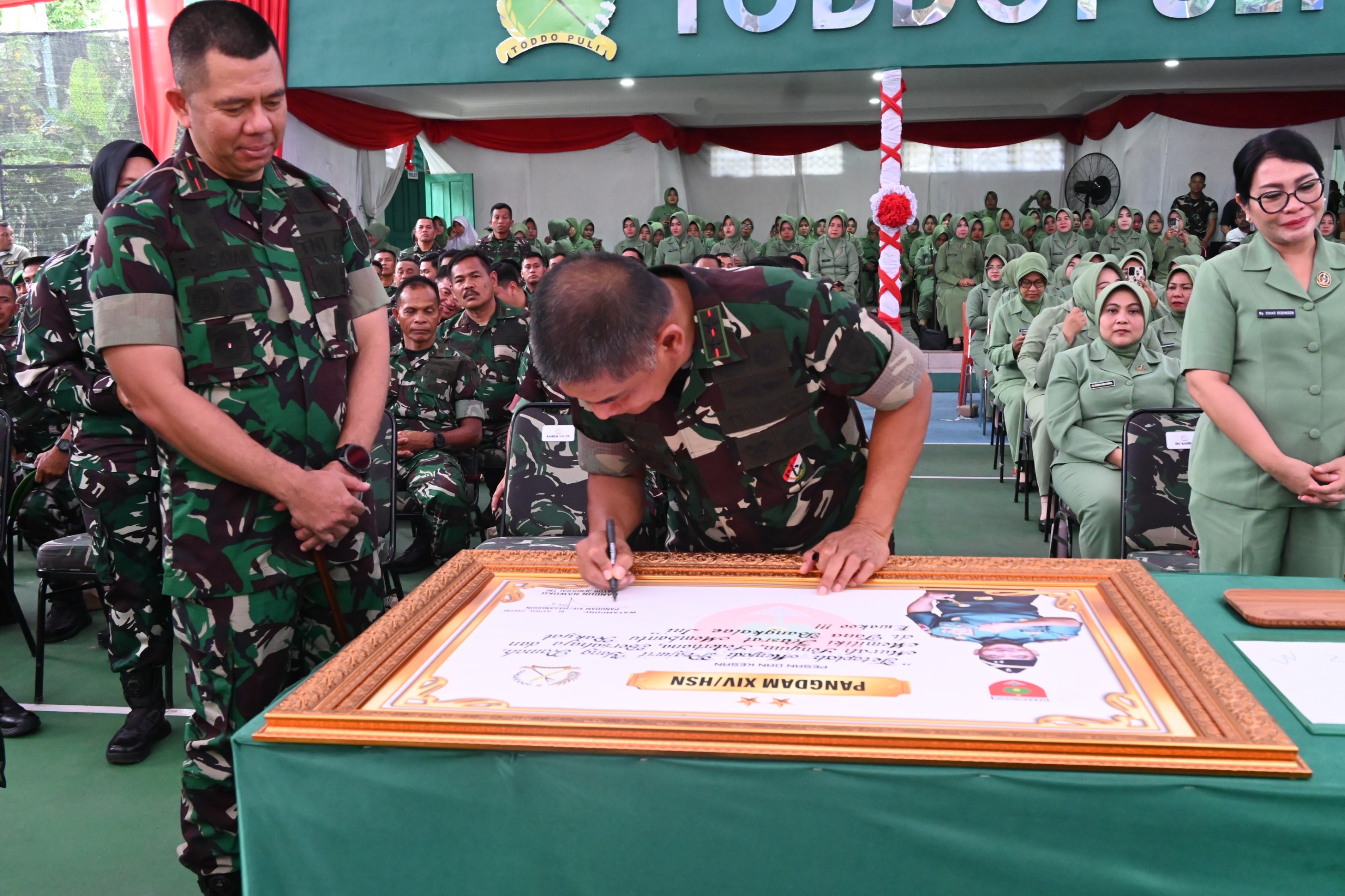 Bone – Pangdam XIV/Hassanudin Mayjen TNI Bangun Nawoko didampingi Ketua Persit KCK PD XIV/Hasanuddin Ny. Renny Bangun Nawoko dan sejumlah Pejabat Utama (PJU) Kodam malaksanakan Kunjungan Kerja (Kunker) ke Markas Korem 141/Toddopuli, bertempat di Jl. Jenderal Sudirman, Kec. Tanete Riattang, Kab. Bone. Senin, (6/4/2026).