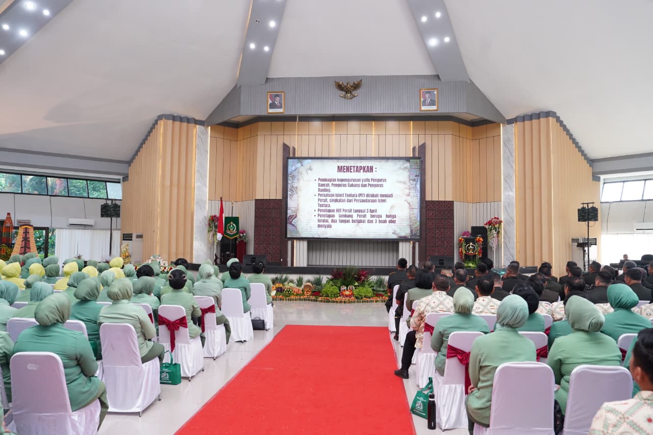 Dalam sambutannya, Pangdam menyampaikan apresiasi dan rasa terima kasih yang mendalam kepada seluruh anggota Persit atas dedikasi dan pengabdian dalam mendampingi suami menjalankan tugas. Ia menekankan pentingnya peran Persit sebagai sumber kekuatan moral, yang mampu memberikan dukungan, motivasi, dan ketenangan bagi prajurit.