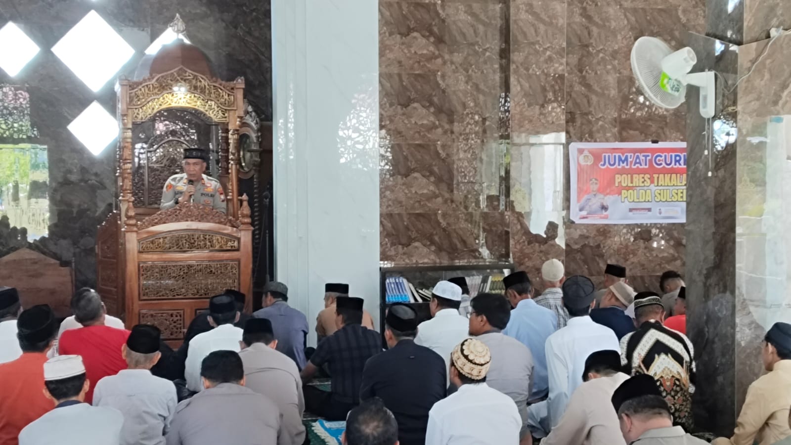 Takalar – Suasana khidmat ibadah salat Jumat di Masjid Jami’ Nurul Aman, Kelurahan Sombalabella, Kecamatan Pattallassang, Kabupaten Takalar, Jumat siang, 24 April 2025, tak hanya diisi dengan lantunan doa.