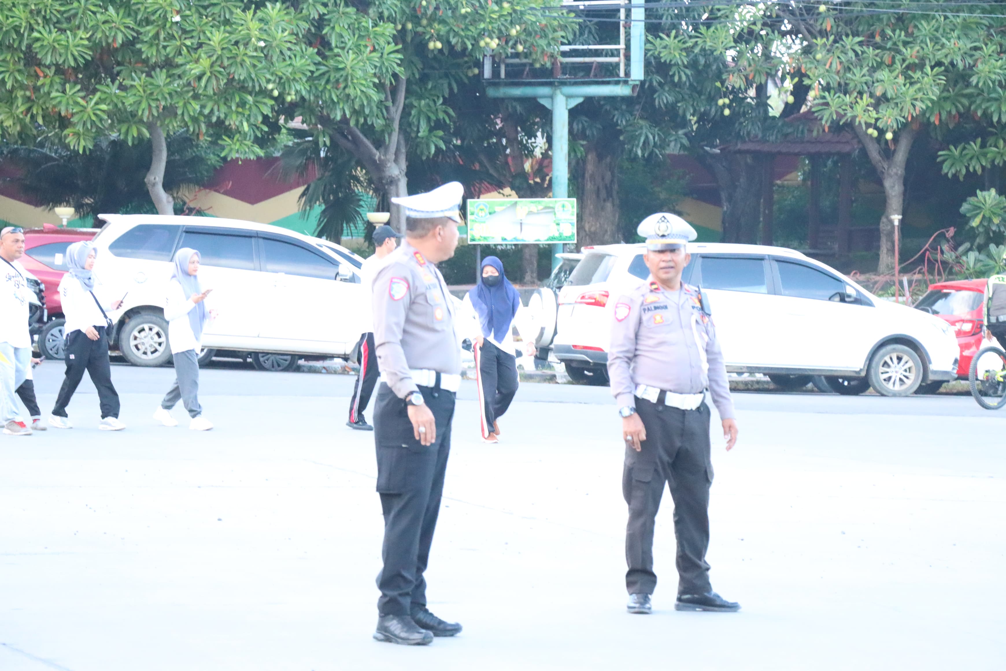 “Kami pastikan personel berada di titik-titik krusial untuk mengatur lalu lintas. Hal ini demi keselamatan para peserta jalan santai sekaligus kelancaran arus kendaraan yang melintas di sekitar lokasi kegiatan,” ujar AKP A. M. Yusuf di sela-sela pengamanan.